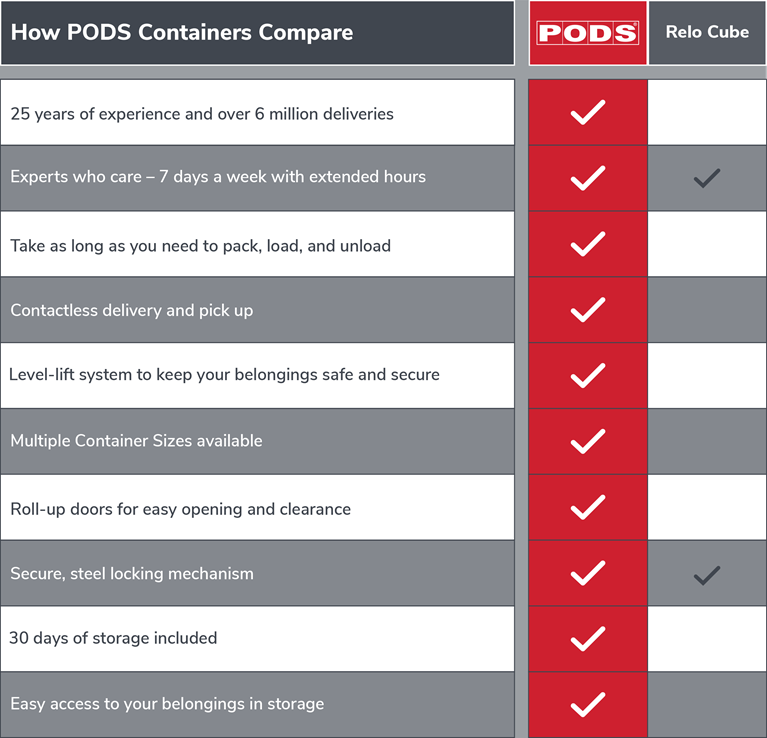 Once you see PODS vs. ReloCube side by side, you’ll understand why we’re the industry leader.