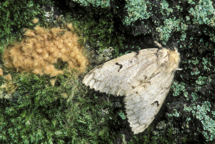 Spongy moth egg masses have a fuzzy texture and are yellow in color. Please see images above.